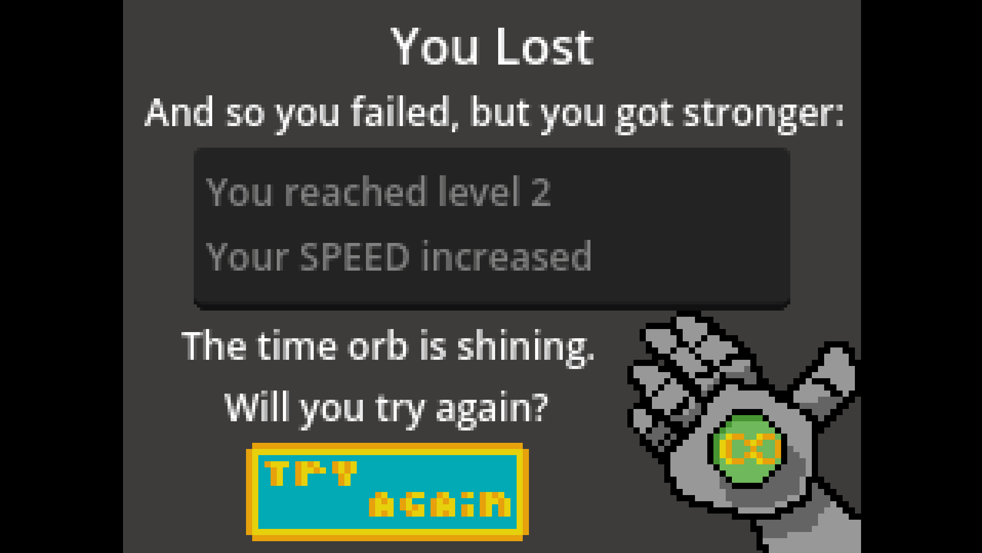 Edit: I have now found two bugs, one is that at level 1 you actually have the highest possible speed instead of the lowest, which is just because I forgot to change the initial value to what it was supposed to be... My bad. The second one is that the boss can just freeze during the fight, and begin just standing there doing nothing, basically winning the fight for you... And this I don't know why is happening, even after looking over my code again.